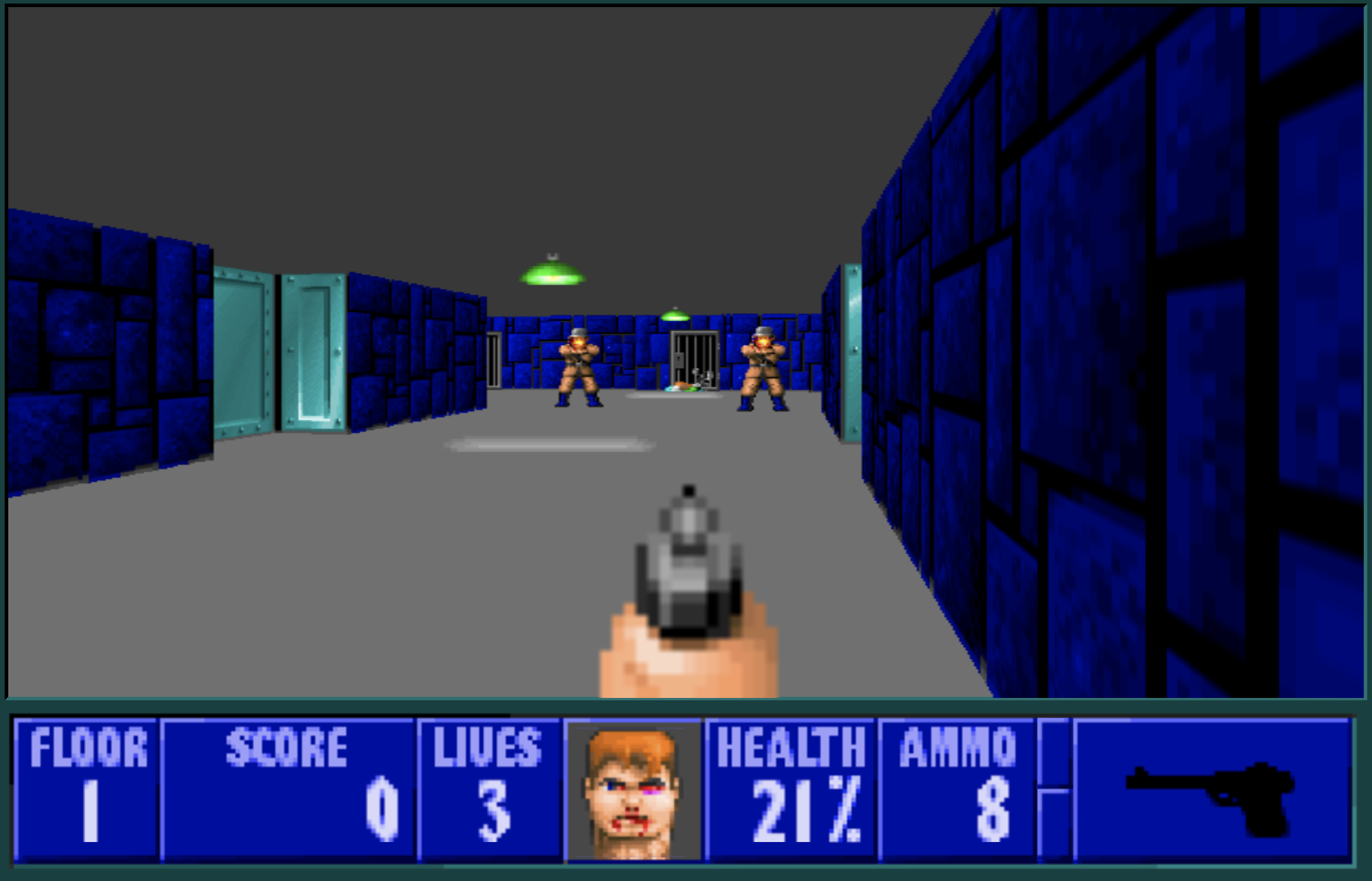 cub3d는 레이캐스팅을 이용해 원시적인 일종의 3D 게임을 구현하는 과제다. 여기서 레이캐스팅이란 단어에서 짐작해보자면, 광선(ray)을 던져(cast) 현재 위치에서 벽(또는 장애물)이 충돌하는 지점을 찾아 거리를 구하는 방식이다. 원시적인 3D게임인 울펜스타인은 이 방식으로 만들어졌다.