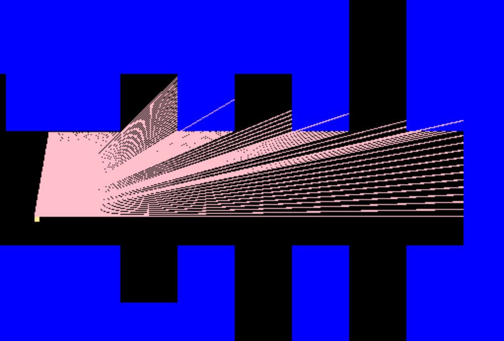 나의 경우 레이캐스팅 엔진을 구현한 다음에 레이를 시각화했는데, 이 과정에서 내 레이캐스팅 엔진의 오류를 찾을 수 있었다. 가령 이런 것들.