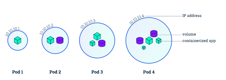 도커에서 띄운 가상의 컴퓨터를 '컨테이너'라고 불렀다. 쿠버네티스에서 띄운 가상의 컴퓨터는 '파드'라고 부른다. 파드는 컨테이너 하나 또는 그 이상으로 이뤄진다.