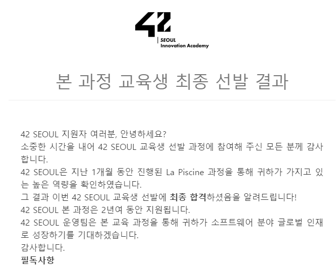 42 서울의 한 달간의 입학시험(피씬 · La Piscine)이 끝난 지도 두 달 가까이 돼 간다.