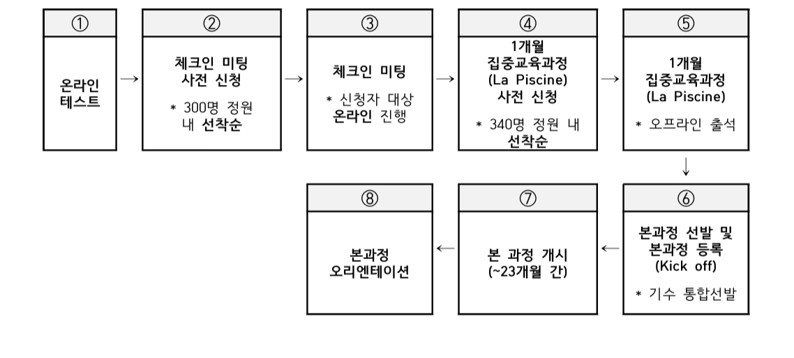 그 자체로 1개월 동안 학습하는 교육과정인 동시에 본과정에 참여할 학생을 선발하는 절차이기도 합니다.