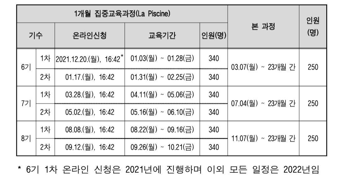 라 피신(La Piscine, 1개월 집중교육과정) 사전 신청 aka 2차 티케팅